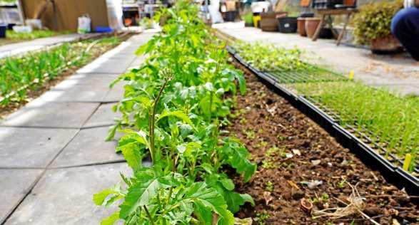 – Vi måste bara gå och täcka av sparrisarna inne i ett av växthusen. Vi bor ju i växtzon fem och det har varit frostnätter, säger Peder. Vi traskar efter och får smaka en krispigt god sparris. Efter en liten rundtur sätter vi oss ner i den mysiga kafédelen ”Livsrummet”.