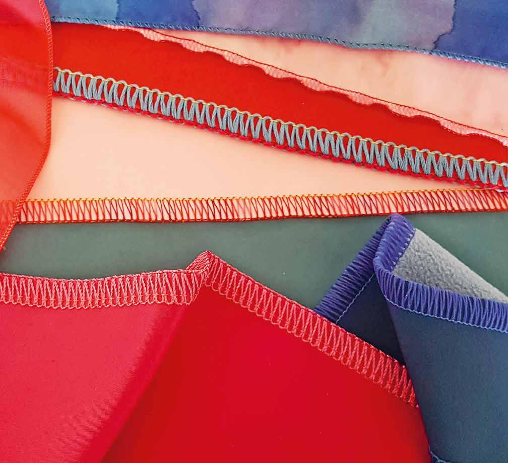 A BERNINA L 860 textilek és cérnák széles választékával, így rugalmas és kötött anyagokkal is kiválóan használható.