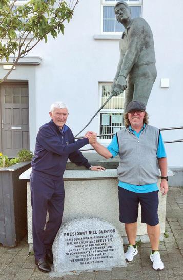 Rather than make it political, Jackie and town leaders welcomed thousands of visitors taking in Clinton’s visit and round of golf. They quickly commissioned a local artisan to sculpt a seven-foot-tall statue of the President golfing for his visit. The famous monument still stands today, now bronzed, to commemorate the impromptu historic appearance there. Jackie proudly shared this while showing us the statue and was quoted in The Irish Times as saying, “I was very emotional. We embraced (he and Clinton) and I thanked him for all he had done for Ballybunion...”