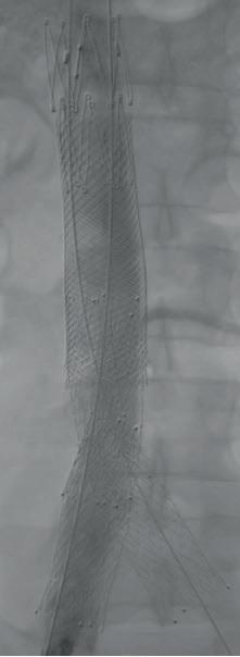 paraparesis were found to be similar to the 30-day outcomes. One-year target vessel instability was 6.6%, of which 2% was component stenosis and 4.6% component occlusion. So why delayed-release diameter reduction, Bellamkonda pondered. “We reduce the number of simultaneous wires from four to one compared to the traditional technique, which reduces the risk of wire loss and re-cannulation, as well as the trauma to bridge vessels,” she said. “This allows us to work with a smaller contralateral sheath and improves intraoperative efficiency.” Given the continued role for PMEG in complex treatment, Bellamkonda said that the study group hopes to see the technique and design disseminate and help inform industry improvements in graft manufacturing. Bryan Kay