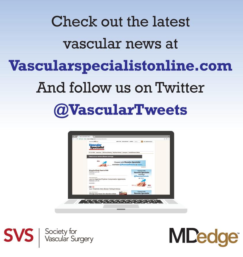 Vascular Specialist is the official newspaper of the Society for Vascular Surgery and provides the vascular specialist with timely and relevant news and commentary about clinical developments and about the impact of health care policy. Content for Vascular Specialist is provided by Frontline Medical Communications Inc. Content for the News From the Society is provided by the Society for Vascular Surgery.