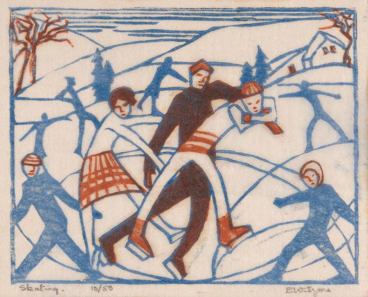 Skating, Eveline Syme, 1929, colour linocut Art Gallery of New South Wales