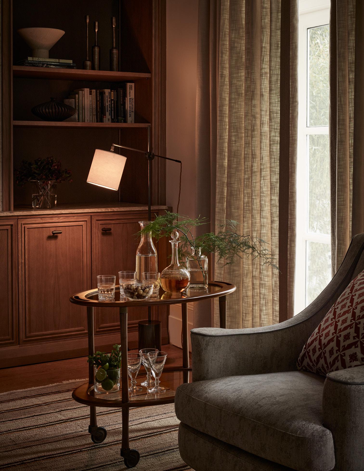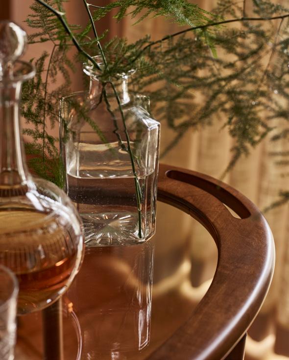 Our first drinks trolley is a classic design composed of two tiers. The alder wood frame combines beautifully with the curved glass and integrated handles, which adds a contemporary feel.