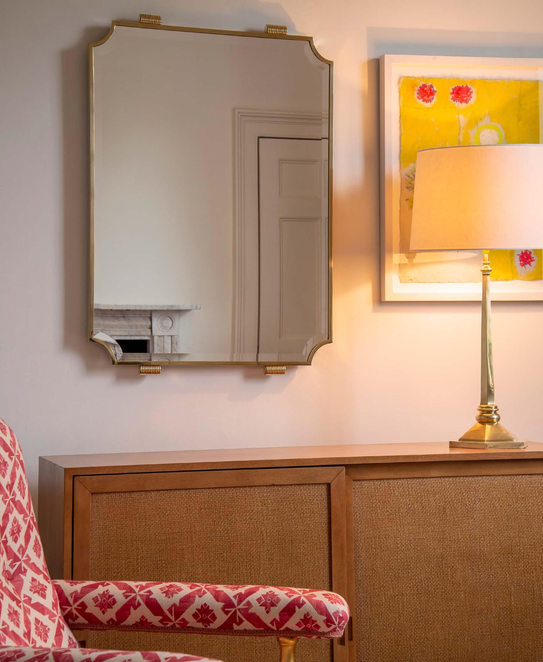 With a decidely modernist aesthetic, this mirror has a striking feel to it thanks to the crisp lines and geometric design. A compelling combination of brass and glass it adds a sophisticated yet contemporary note to the space.