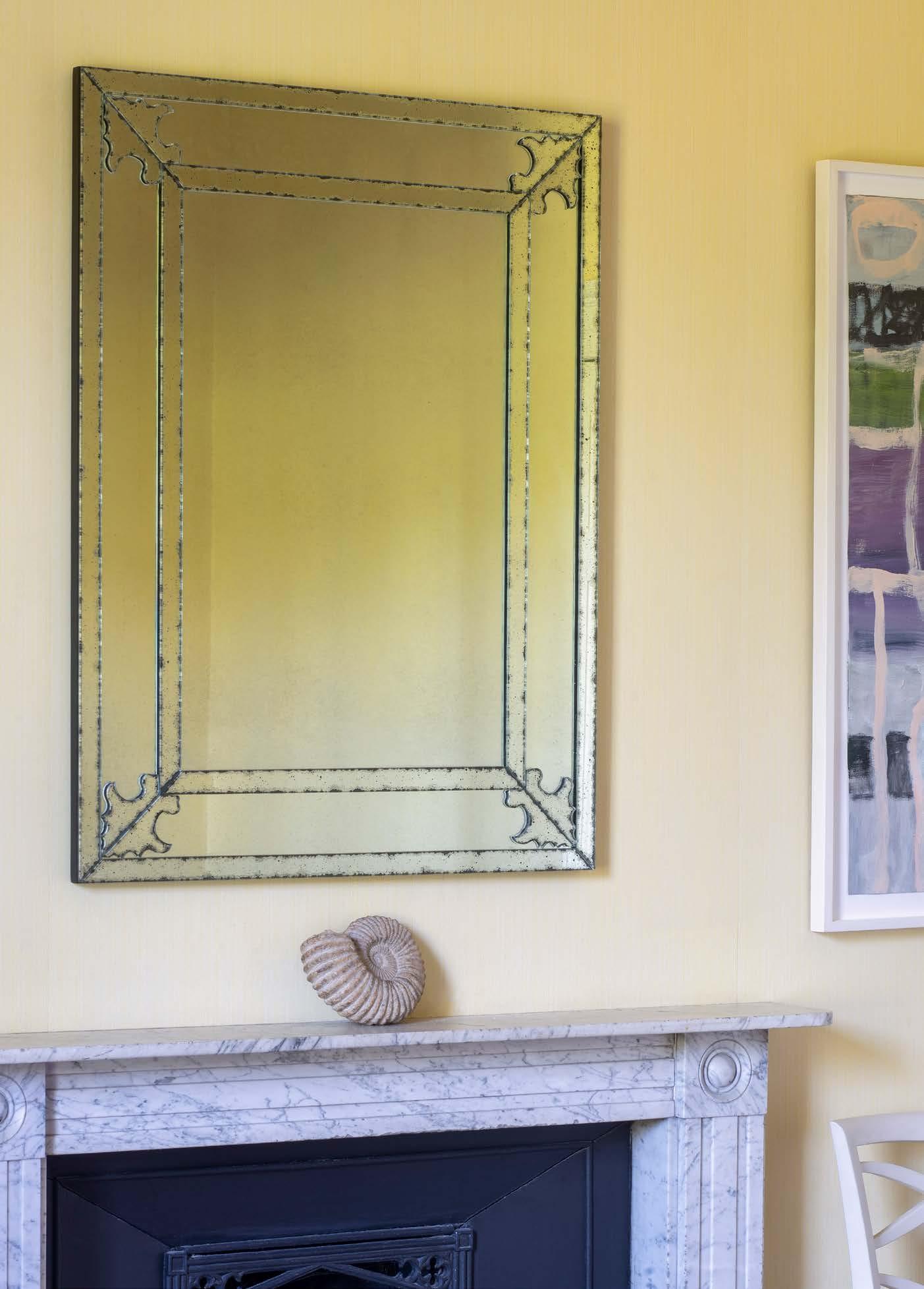 Based on an antique Venetian design, this mirror has a timeless quality to it and is reminiscent of some of our earlier pieces. A neat, geometric shape, it is decorated with elegant emblems at the corner of the frame.