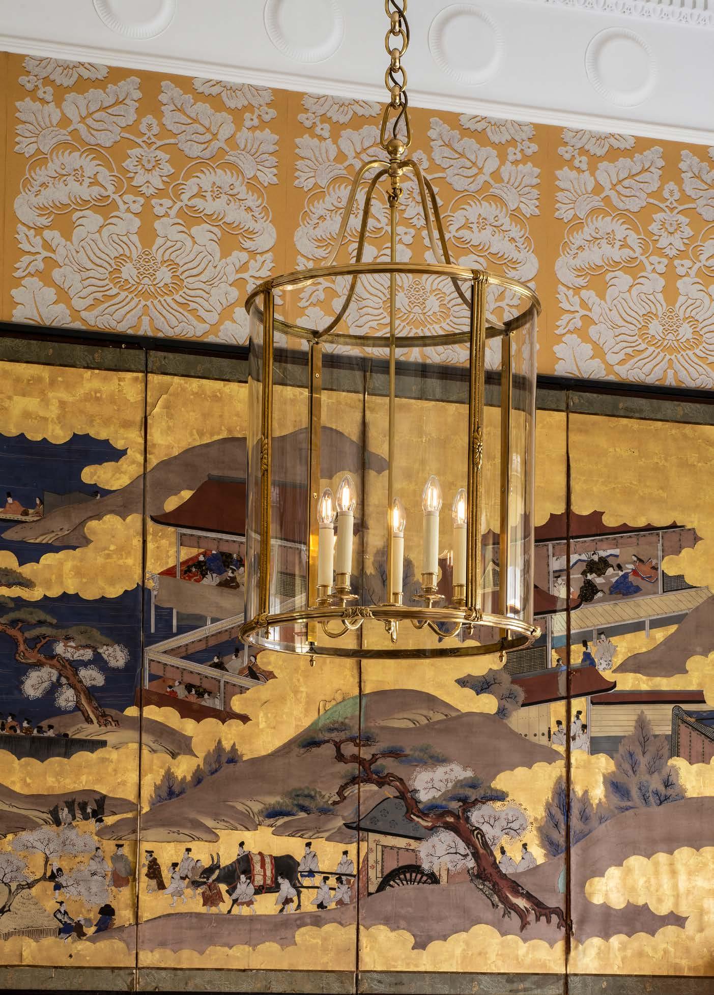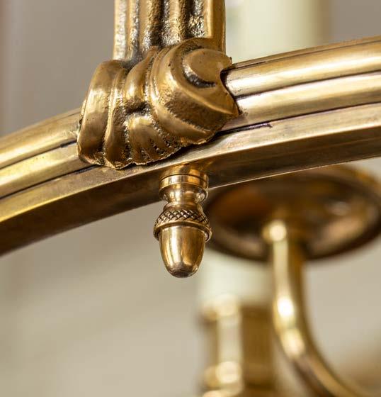 Based on an 1940’s French design, this hall lantern marries a flowing shape with clean lines. The brass echoes the warmth of the candles while the ribbed frame is highlighted with small pieces of classical decoration.