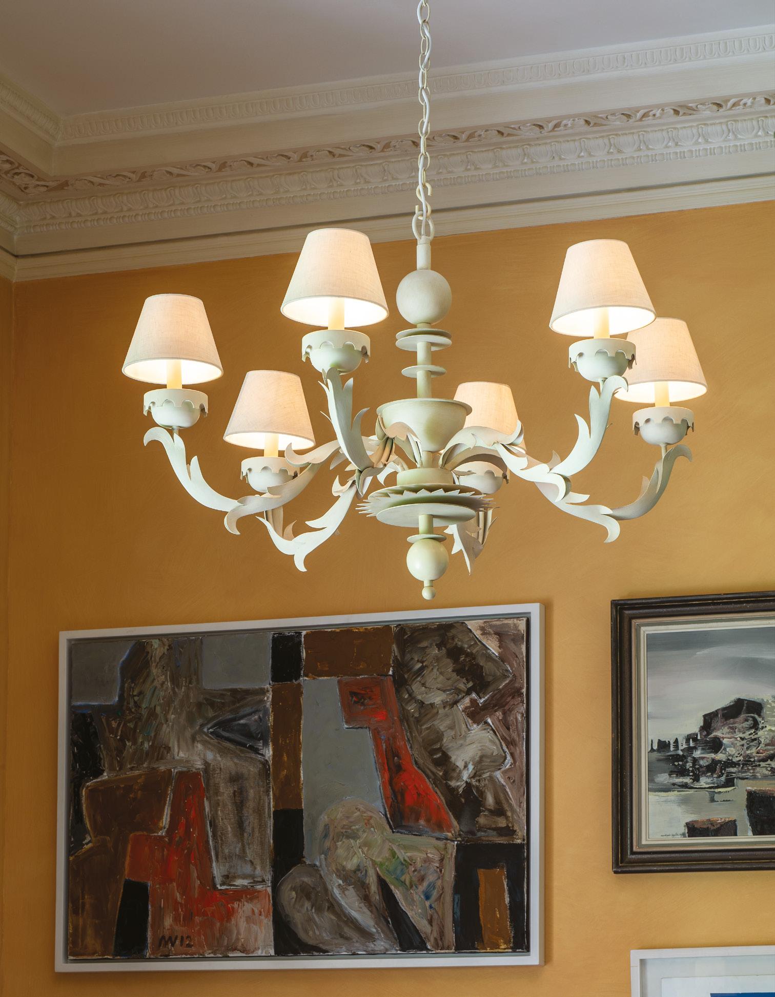 Adapted from a 1940s design, this chandelier has an elegant simplicity to it. Decorated with flourishing foliate motifs, it is given a more modern feel thanks to the ivory white finish.