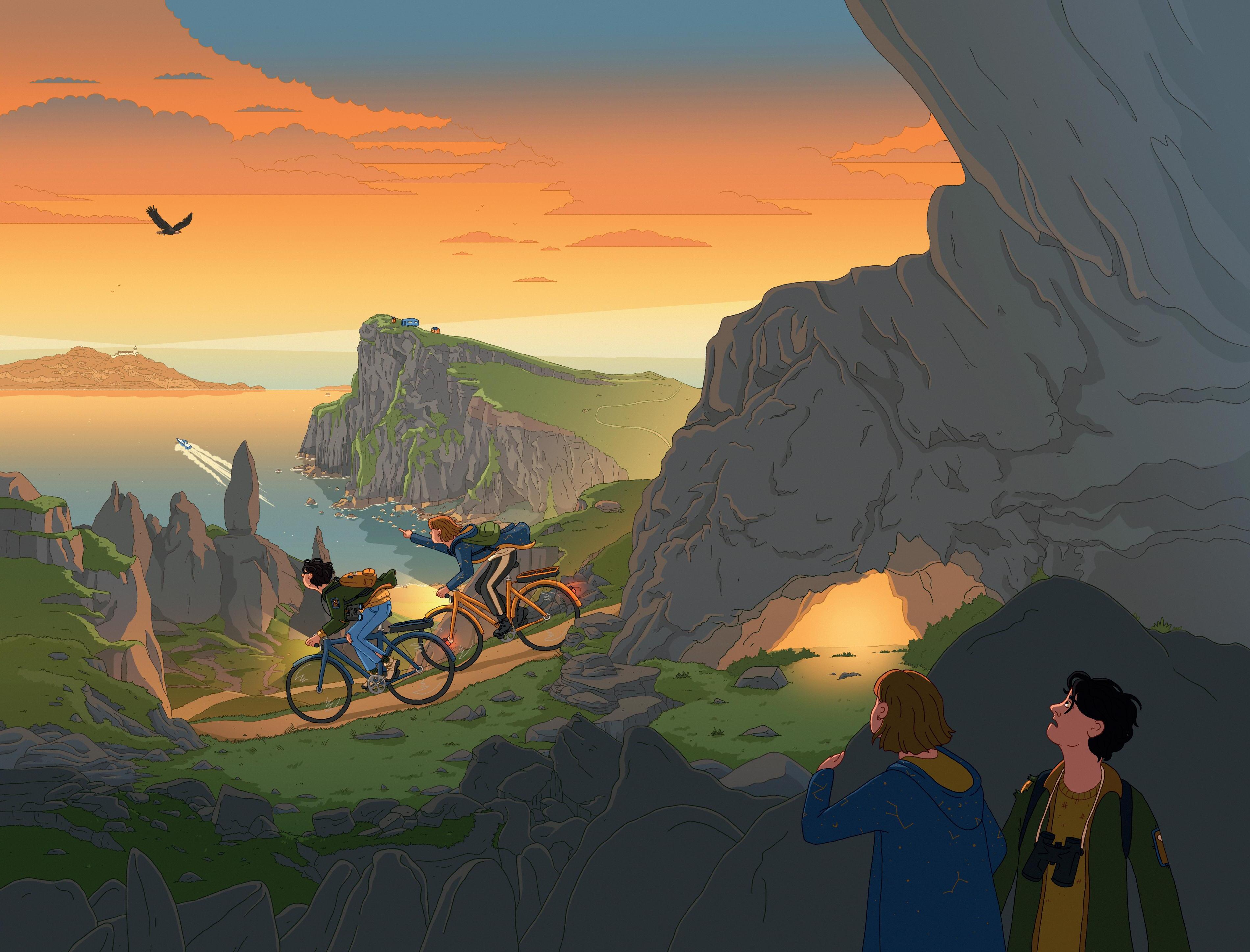 ‘Hier,’ zegt hij. ‘Dat is een half uur rijden hiervandaan.’ Hij en mama buigen zich over de tablet.