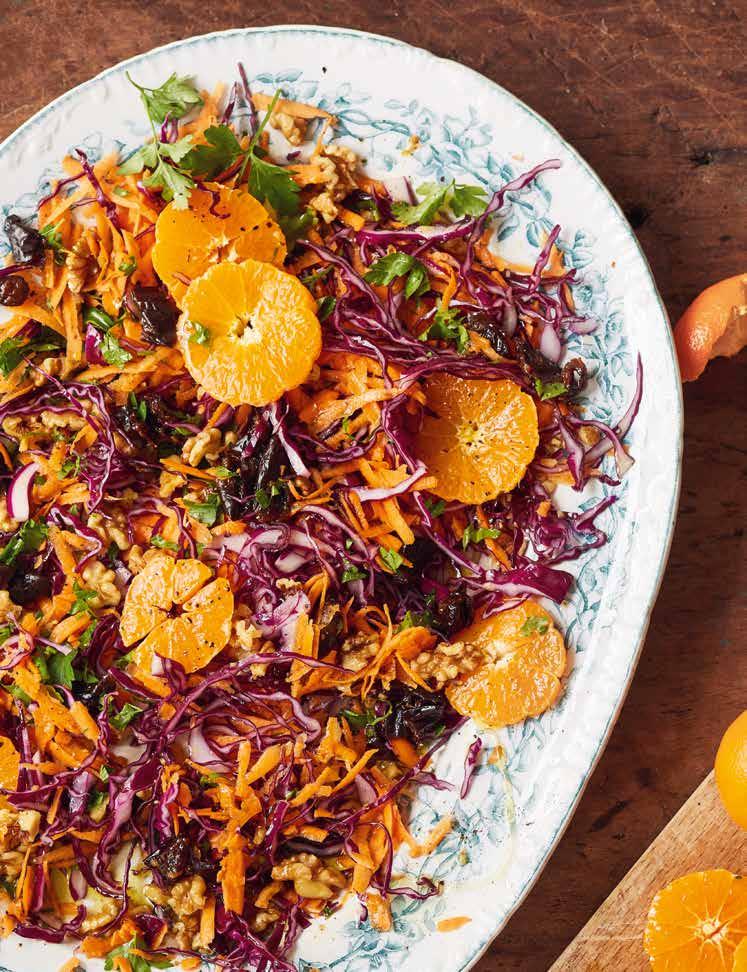 wortels: feestelijke salade met kool en clementines 108 gefermenteerde wortels en abrikozen 230 herfstkool met hazelnoten 105 kimchi (of zuurkool)-slaw 182