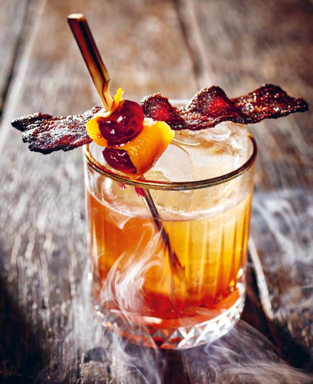 KRIJGT DOOR DE BACONSTRIP EEN KICK TE GEVEN MET CHILIPOEDER, EN DE COCKTAIL EEN SWEET EDGE