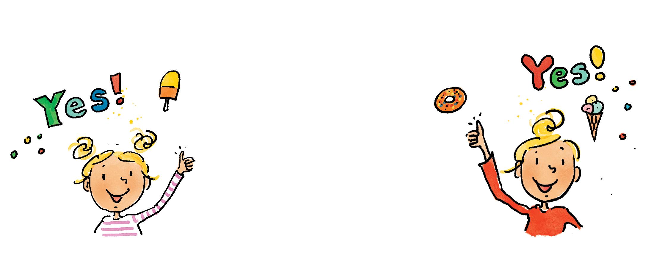 ‘Yep,’ antwoordt Bram. ‘Ze mogen de hele dag doen waar ze zelf zin in hebben. Logeren, ijsjes eten, naar een pretpark, alles.’