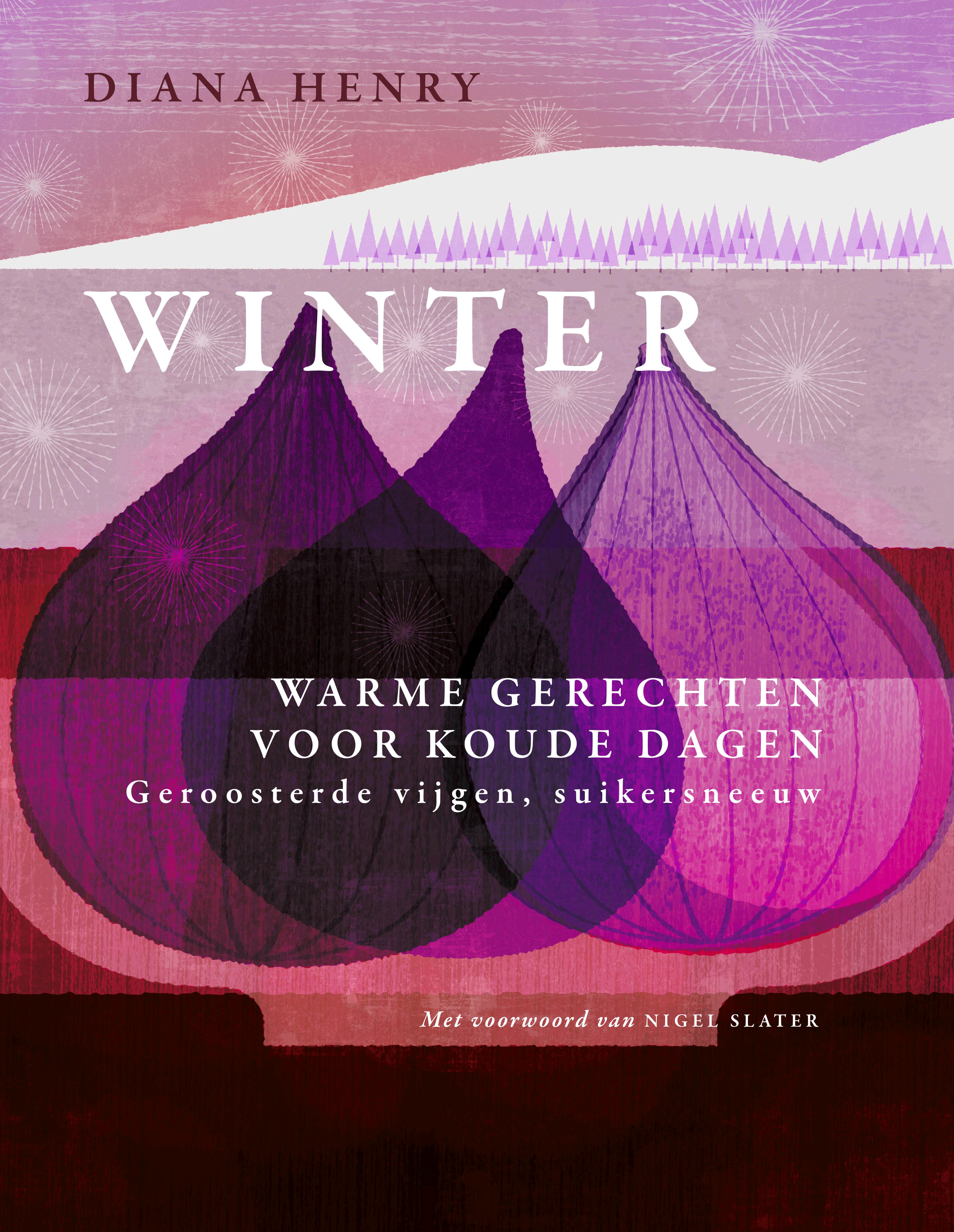 Ik reisde vijf jaar voor dit boek, altijd in de herfst en winter, en altijd met Ted op sleeptouw, naar Canada en de VS, Rusland en de Alpen. Ik verzamelde recepten en dronk in veel landen glögg (glühwein, vin brulé…). Ik bezocht konditoreien in Wenen en ging steeds weer terug naar Scandinavië. Ik ging naar een suiker-op-sneeuw-feestje in Vermont en zag hoe cranberry’s van de scharlakenrode veengronden in Massachusetts werden geoogst. Ik zocht naar eten dat je verwarmt, gerechten die het goed doen bij wat de meeste mensen ‘slecht’ weer noemen: regen, sneeuw en loodgrijze luchten. Ik houd van koud weer, stille sneeuw, tikkende hagel en een prikkelende wind. Ik houd van de manier van leven en koken die dat weer met zich meebrengt. Het kan goed zijn om naar binnen te keren, en de keuken is daarvoor de beste plek. Twintig jaar later maak ik de gerechten uit dit boek nog altijd: het omslag van mijn exemplaar is gescheurd en de bladzijden zijn bevlekt. Ik ben blij dat Winter – met deze nieuwe editie en ook wat nieuwe recepten – een nieuw leven krijgt.