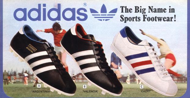 links: Adidasadvertentie uit de jaren 2000. Het wereldmerk heeft zijn oorsprong in de jaren 20 van de vorige eeuw.