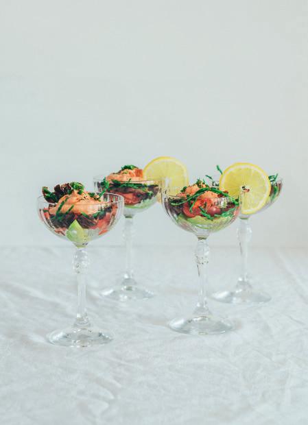 Dit lichte voorgerechtje is perfect om te maken als je gasten krijgt. Je kunt alles van tevoren al voorbereiden en het opmaken is eenvoudig. De smaken zijn zinderend en spectaculair, en stomen je smaakpapillen klaar voor een hoofdgerecht. Snijd de groenten en vruchten in mooie, fijne blokjes, dan blijven de torentjes straks goed staan.