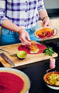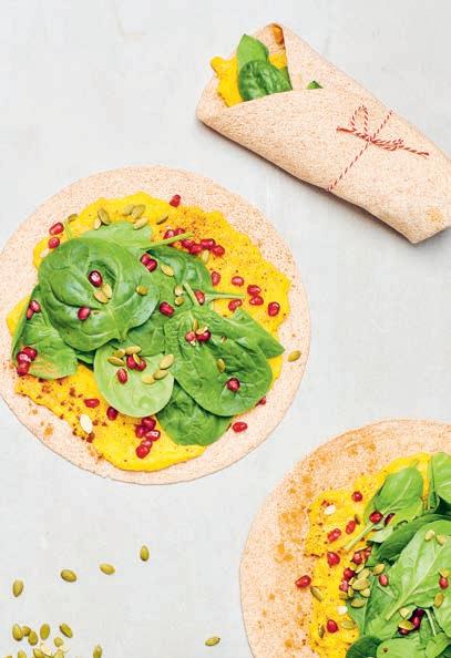 Laat je verrassen door de Indonesische wraps met sperziebonen en zoete aardappel op blz. 92, smul van de pizzawraps met artisjokharten op blz. 89 en schuif met gemak de verrukkelijke enchilada’s met zwarte bonen en geraspte kaas van blz. 98in de oven.