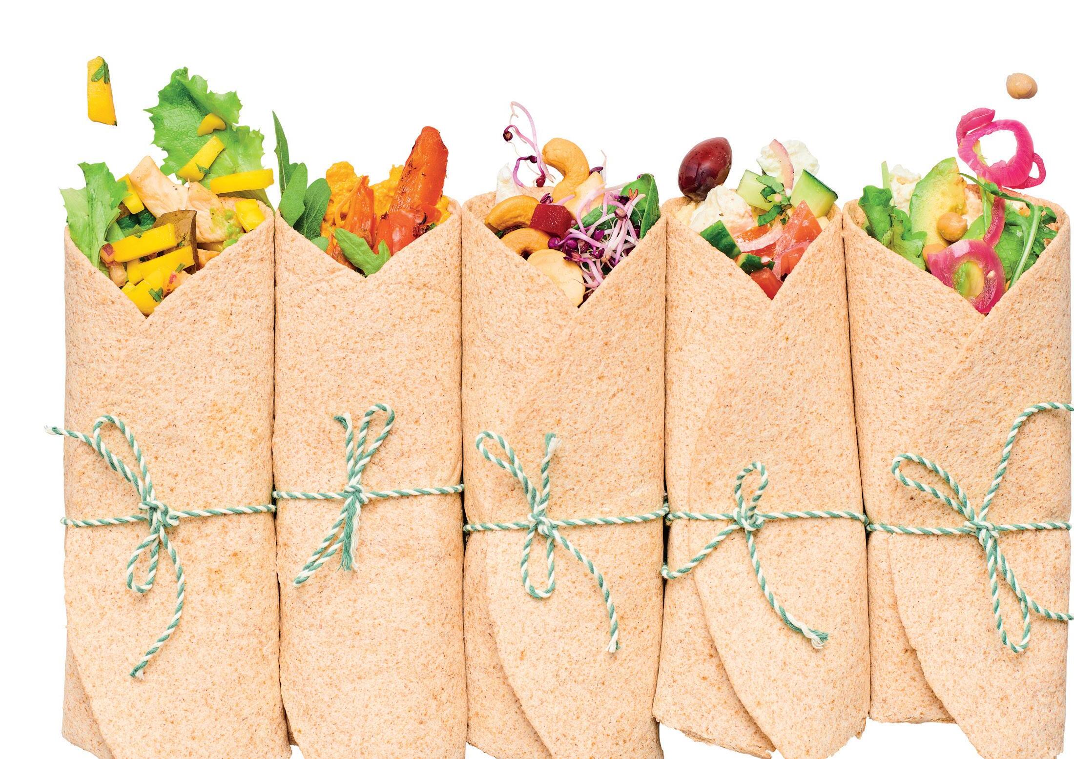 Wij gebruiken wraps als basis om een gezonde, voedzame maaltijd op tafel te zetten die je ook on the go kunt eten. De wrap maakt het makkelijker om je (ingepakte) salade op te eten en zorgt ervoor dat je gezonder eet. De standaard boterham met een plakje kaas en het agv’tje zijn verleden tijd: jij geniet van een volkorenwrap met hummus en gegrilde paprika, een quesadilla met courgette en feta of een currywrap met kikkererwten en bimi.
