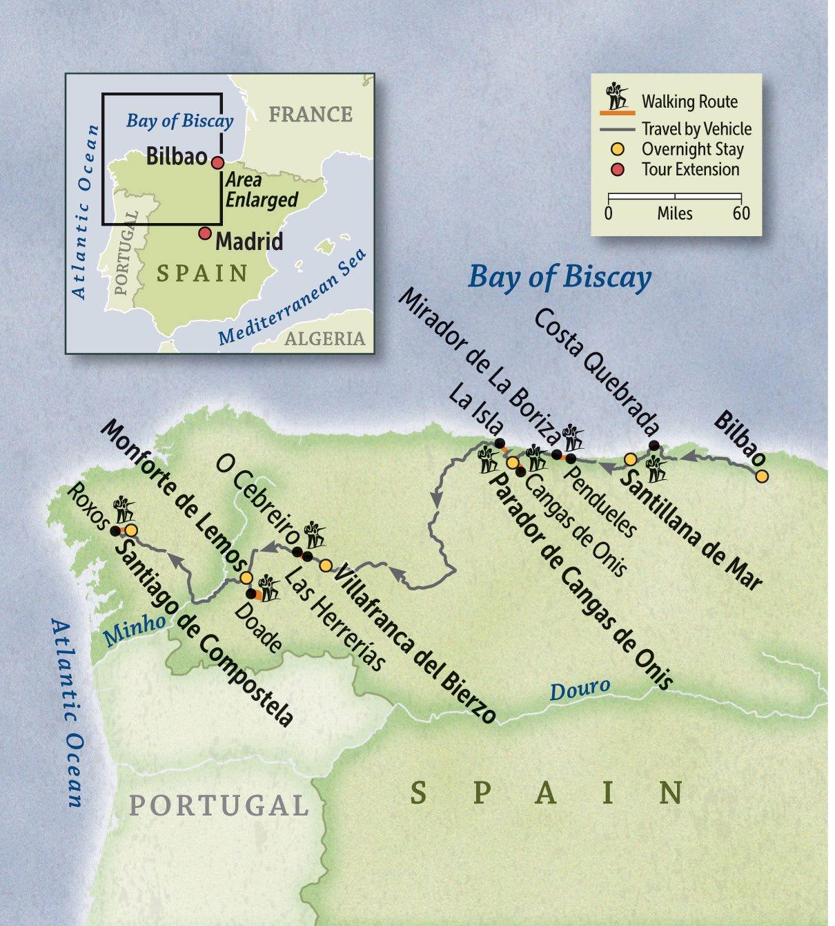 Immerse yourself in the history and cultures of northern Spain as you explore scenic local paths and highlights from the Camino de Santiago, the Way of Saint James. Start in the heart of Basque Country, then walk along the dramatic coastline of Cantabria and into the wild green hills of Galicia—ending in Santiago de Compostela.