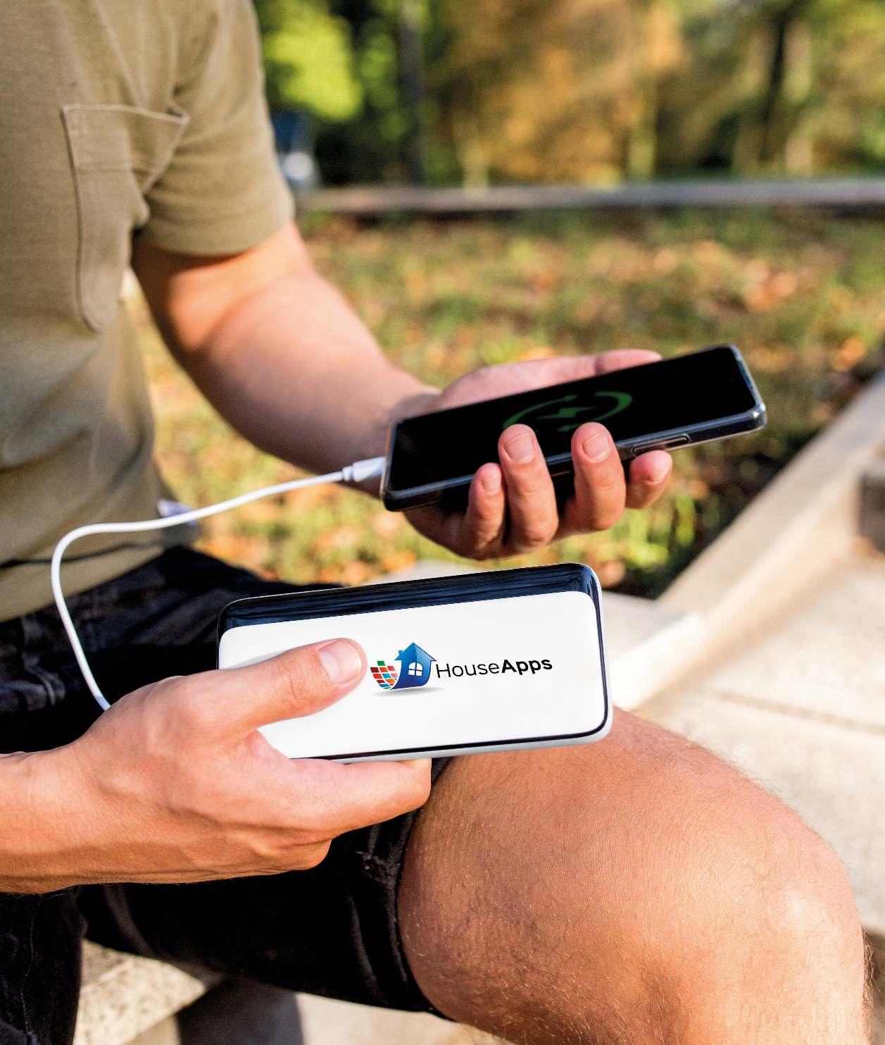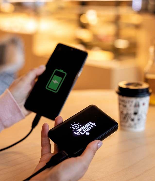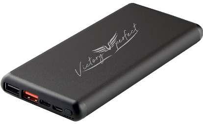 Ausgänge: USB-C und 2x USB Ausgänge (5V/3A, 9V/2A, 12V/1.5A), digitale Anzeige des Ladezustands, Hintergrundbeleuchtungseffekt nach Gravur, inklusive Tasche und USB-C Kabel, verpackt in Geschenkbox