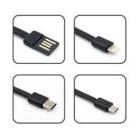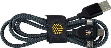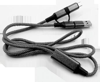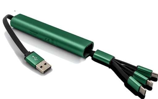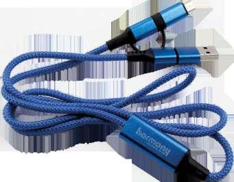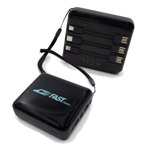 Powerbank 5000 mAh mit 2 integrierten Kabeln: USB-C und Micro-USB, das Set enthält einen Adapter mit Micro-USB-Eingang und eine Spitze, die mit iOS-Geräten kompatibel ist, 4 LEDs zur Anzeige des Ladezustands, USB-C Eingang, inkl. Kabel USB-C