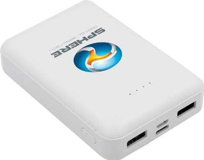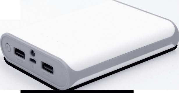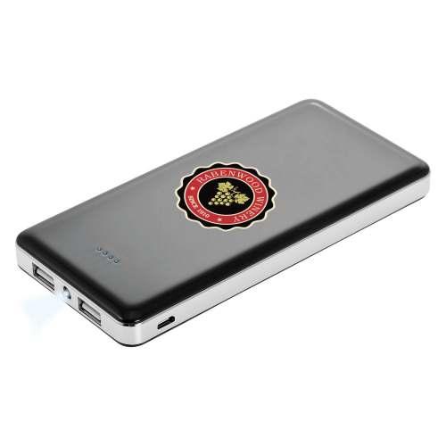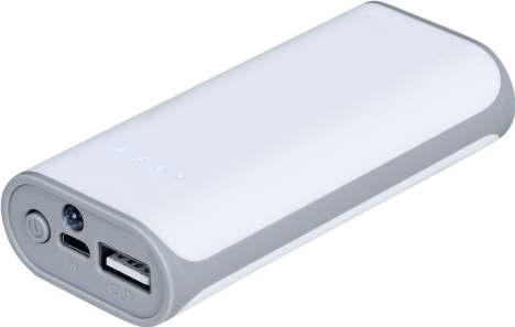 Powerbank 12000 mAh mit Lampe und LED-Licht, Input: 5V/1A, Output: 5V/2A, inkl. Kabel Micro-USB