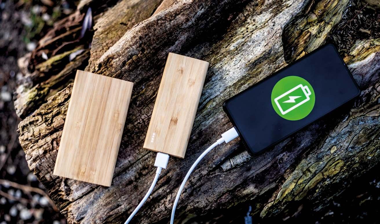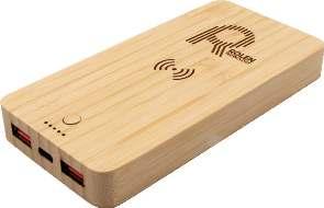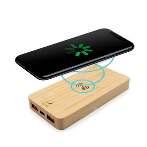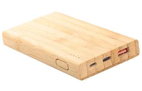 Kabellose Power Bank aus Bambus 8000 mAh B'RIGHT, kabelloses Ladegerät 15W, funktioniert mit Mobiltelefonen mit induktiver Ladefunktion, 5 Dioden zeigen den Leistungspegel an, USB-C Eingang, 2 USB 18W Ausgänge, USB-C 19W Ausgang, inkl. Kabel USB-C
