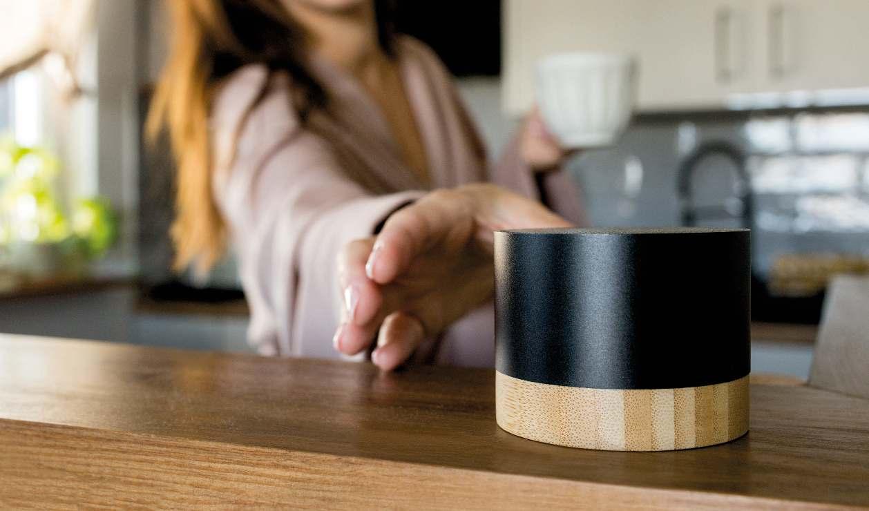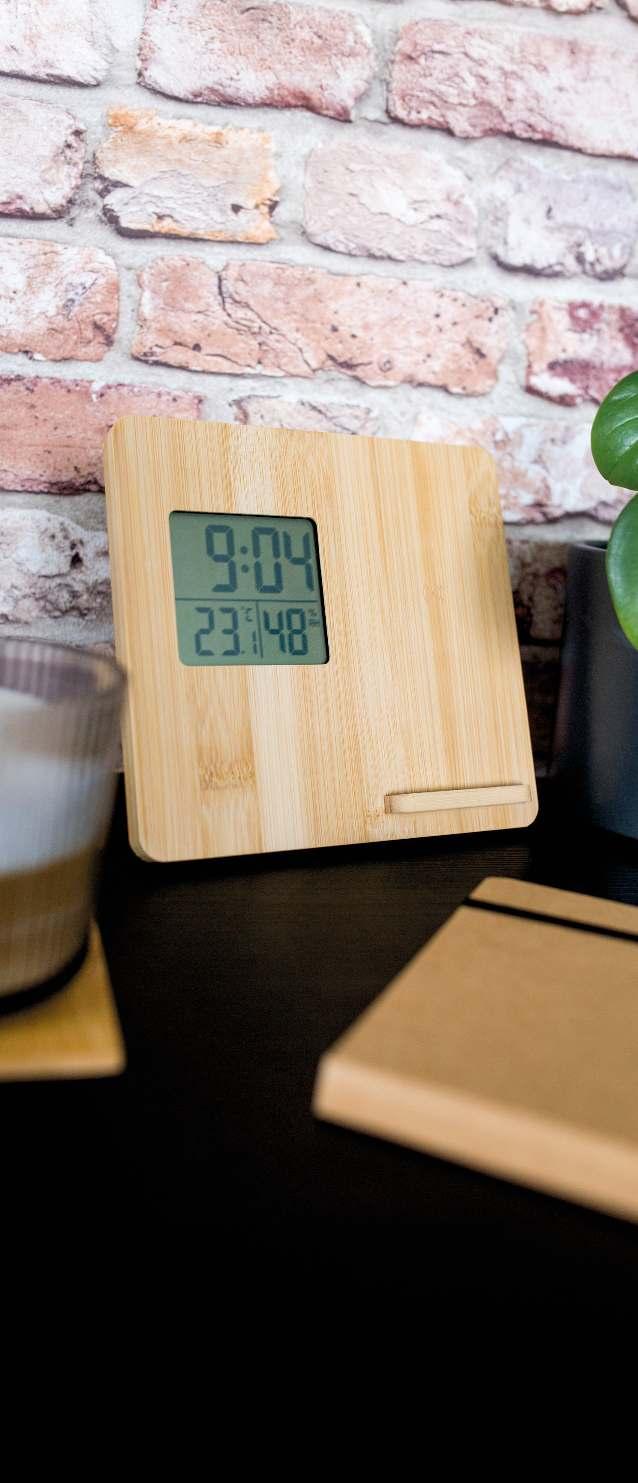 Kabelloses Ladegerät aus Bambus 10W, Wetterstation, Wecker, Telefonständer, funktioniert mit Geräten mit induktiver Ladefunktion, Micro-USB-Kabel inkl.