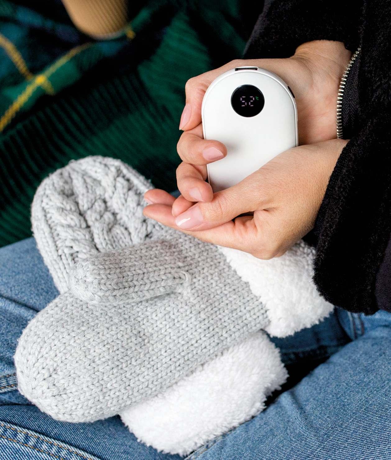 Air Gifts Powerbank 10000 mAh, passt in eine Tasche oder in die meisten Rucksackfächer, mit digitaler Anzeige des Batteriestands, Eingang 5V/2A: USB-C und Micro-USB, 2 USB-Ausgänge (max. 5V/2A), kann zwei Geräte gleichzeitig aufladen, inkl. USB-C-Kabel und Filztasche mit Karabinerclip zur Befestigung, Produkt aus ABS und Filz