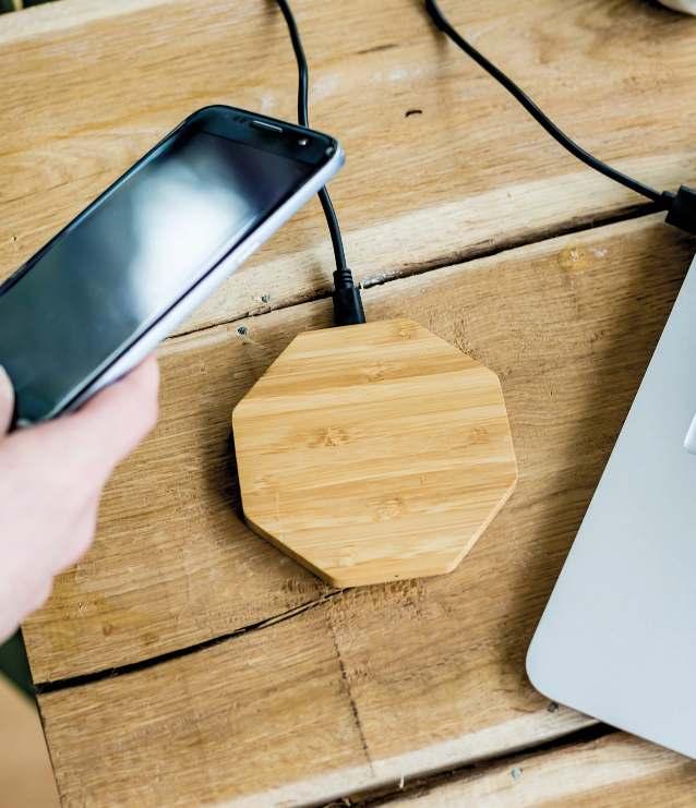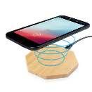 Kabelloses Ladegerät 5W aus Bambus, geeignet für Handys mit Induktivladefunktion, Eingang 5V/2A, Ausgang 5V/1A aufzuladen, inkl. Micro USB-Kabel