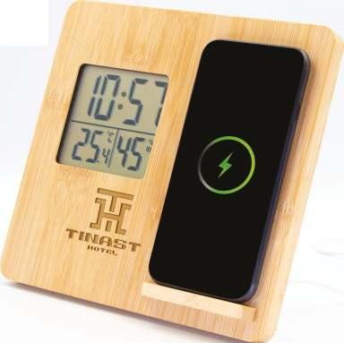 Wireless charger 10W, works with devices with inductive charging function, features weather station, clock, thermometer and hygrometer, can also be used as a phone stand, USB-C input, USB-C to USB-C cable included, product made of bamboo 18,80 EUR bamboo 18 x 17 x 2,3 cm L