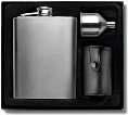 Gift set, hip flask 175 ml, cup 30 ml, chess, playing cards and dice, wooden gift box