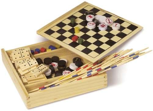 Zestaw upominkowy, piersiówka 175 ml, kieliszek 30 ml, szachy, karty oraz kości do gry, drewniane pudełko podarunkowe