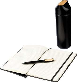 Gift set, thermo bottle 640 ml, notebook approx. A5, ball pen, phone stand, gift box