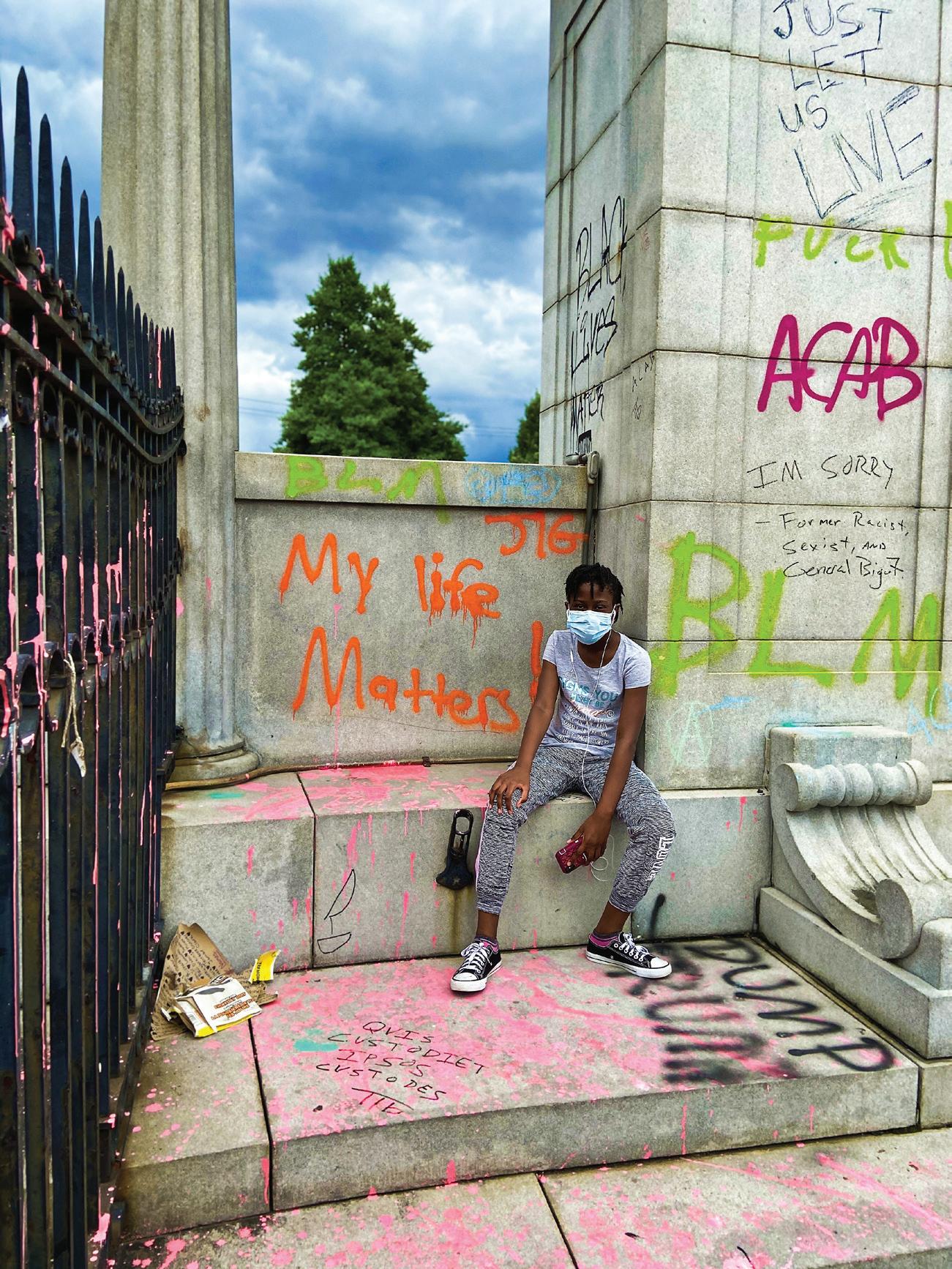 e “Virginia is for Lovers” sign redecorated with the colors of the rainbow to show that Virginia was and is for all lovers. Beautiful Southern Pride. e music of Whitney Houston and Lady Gaga blasting from the speakers as it shook the park, people, young and old, dancing and singing. e families, children with their parents, parents with their children. e drag queens who grace us with their presence. What makes a queen? eir regal adornment, elegant status, compassionate atmosphere, o ering comfort, and compliments to all their subjects. What makes a queen? e tent labeled “free mom hugs” and one mom o ering to hug me, an adult but still someone’s child too. A mother’s hug is like a blanket, a safe space away from the harsh cruel realities of the real world, but a hug can also be reassuring as with every hug, we must let go, but the tenderness and protection is still there. Away from our mothers, our homes—we make our homes wherever we can with whoever we choose, our chosen family, not by blood, not by name, not by dreams or goals, but by connections and the deep emotions we feel for one another.