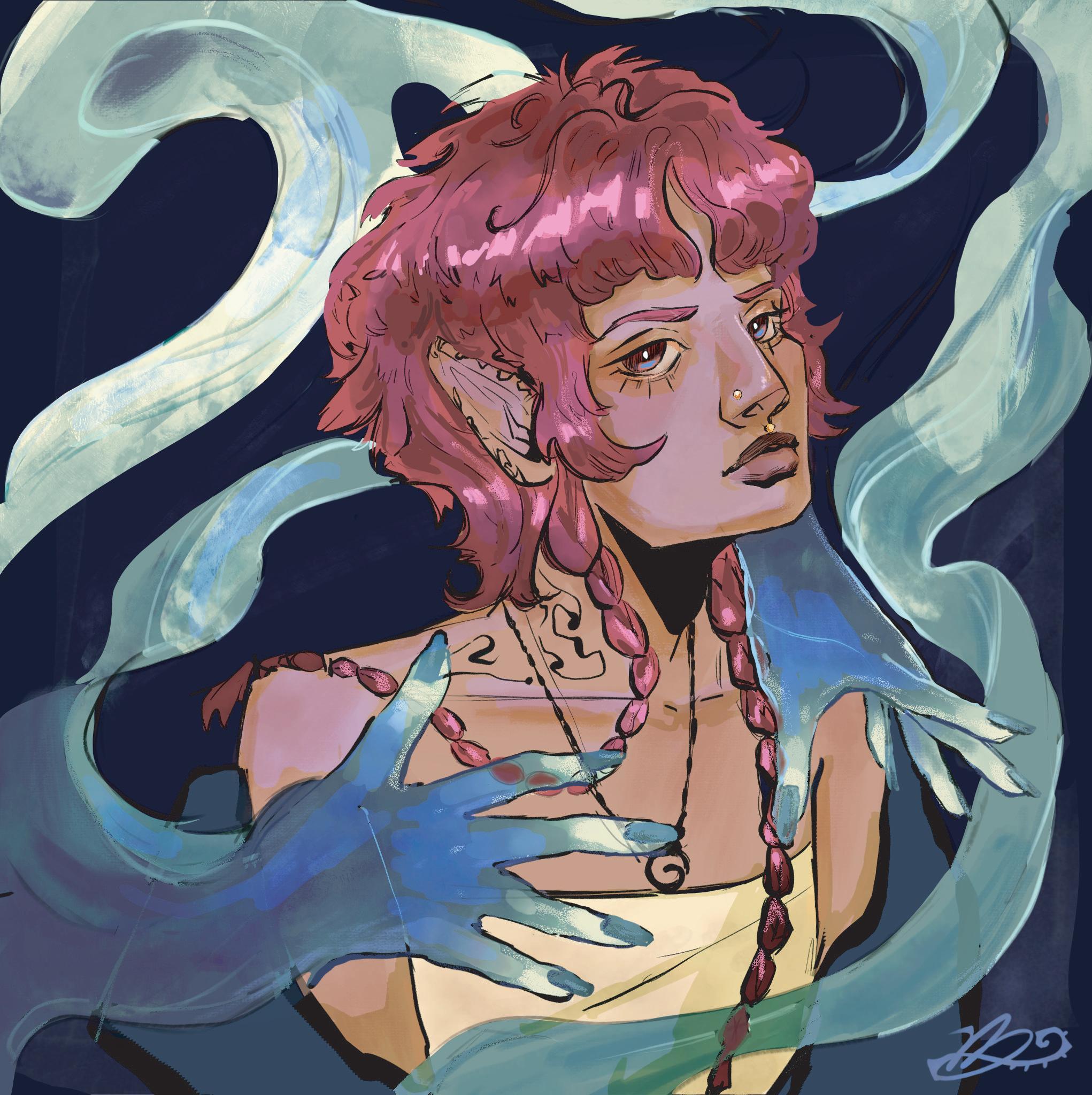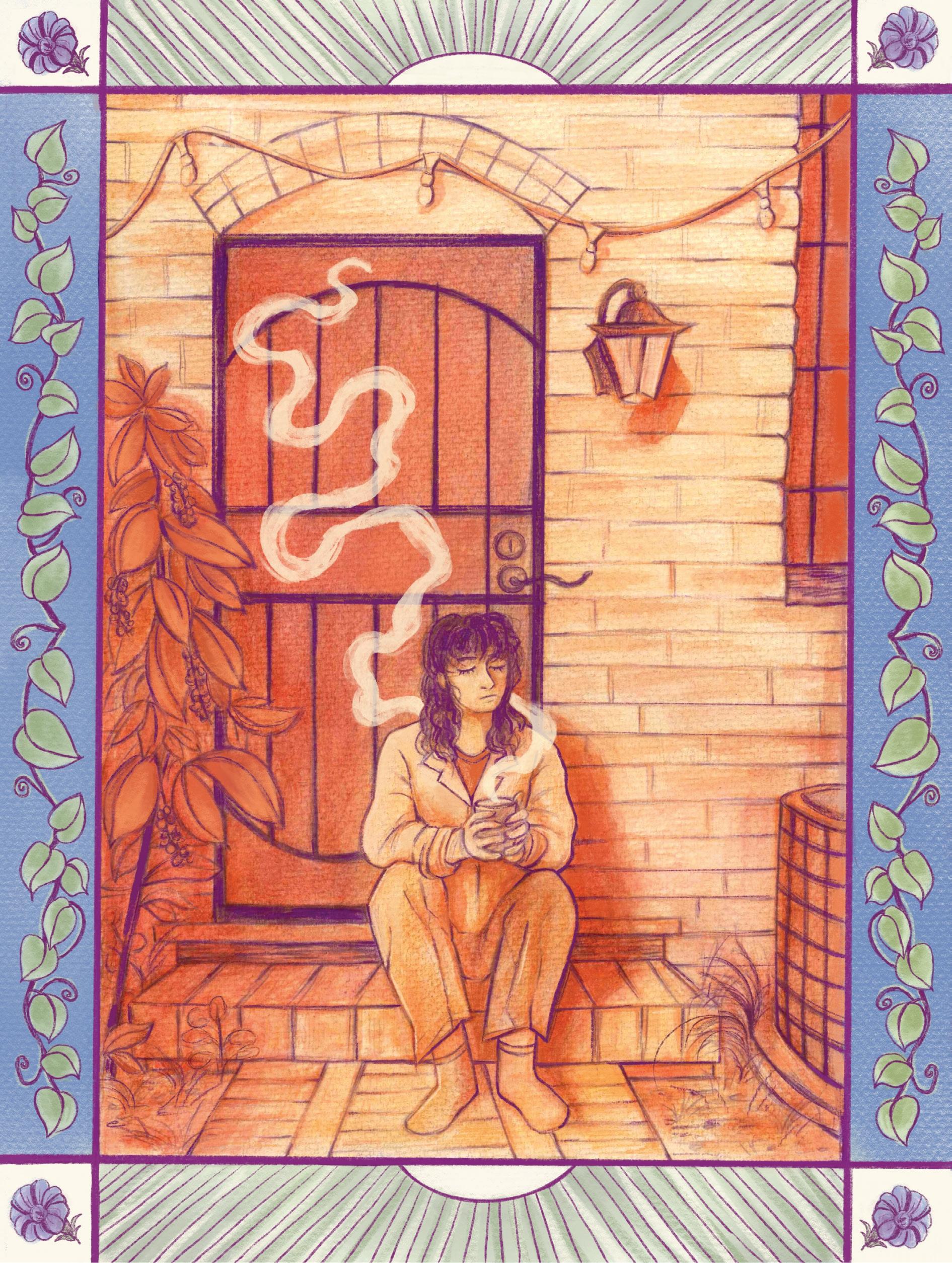 “You could have everything you want. Everything you have ever dreamed of having: meaning, peace, understanding. You will fill that void inside of yourself that eats at you so violently. You will be whole,” it said, “and I will have humanity.” It crept closer, and I got colder. It seeped into my skin. It didn’t feel like anything at first but coldness, an inhuman, unearthly chill that contemporary language—at least to the extent that I spoke it—could not put into words. And in the coldness came feelings of a different kind, not so much physical as it was visceral, neural, something just beyond the scope of understanding. I saw things in the cold, too, in the thing’s white-lavender glow, images of explosions and auroras and particles accelerating into dust. They were flashing and flying all around like a View Master from my childhood, though that memory now was lost among all the jumbled imagery of creation. Of destruction? Of many things, whatever the words for them were. I felt higher than I had from any needle, brain gone so icy that, as far as I was concerned, it no longer existed. I was hungry, hungry, starving; the hunger was all I knew. But it wasn’t in my gut. It was everywhere else, in the stars, the distant cosmos that I could almost stick my hand out—I still had hands, right?—and reach. I was a god.