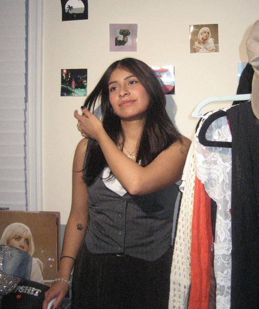 make any outfit more daring. Her last touch to any look is always jewelry from her expansive collection and her everyday black bag. While Claros draws fashion inspiration from internet creators, her dream purchase comes from one of her favorite musicians, pop icon Sabrina Carpenter. She’s been looking for the perfect Naked Wolf platform boots to replicate Carpenter’s onstage presence.