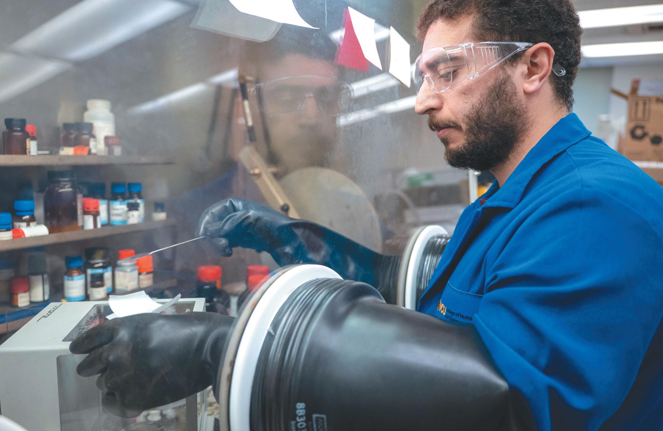 Mahmoud Kaid is a Ph.D. candidate working in a chemistry lab where he develops “materials and electrochemical systems” to improve lithium-sulfur batteries, reducing the cost and environmental impact of