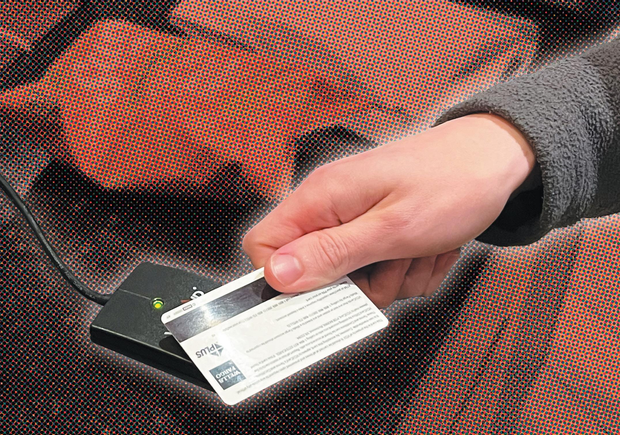 A VCU student swipes their student ID at Bleecker Street. Photo collage by Zach Montgomery.