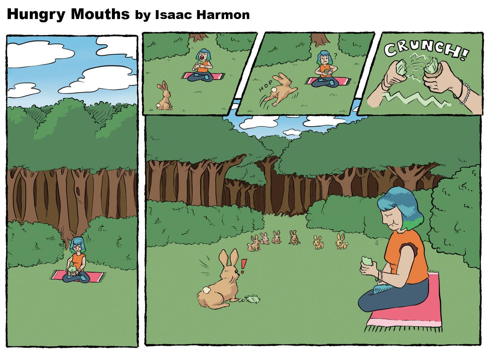 I wake up to darkness and the faint, acidic smell of celery. I’m bound to a chair that is uncomfortably reminiscent of the horrible desks in Hibbs Hall, and my nose itches against the burlap sack covering my head. The last thing I remember is putting up promotional posters for a club event — how did I get here? And why does it smell like celery?