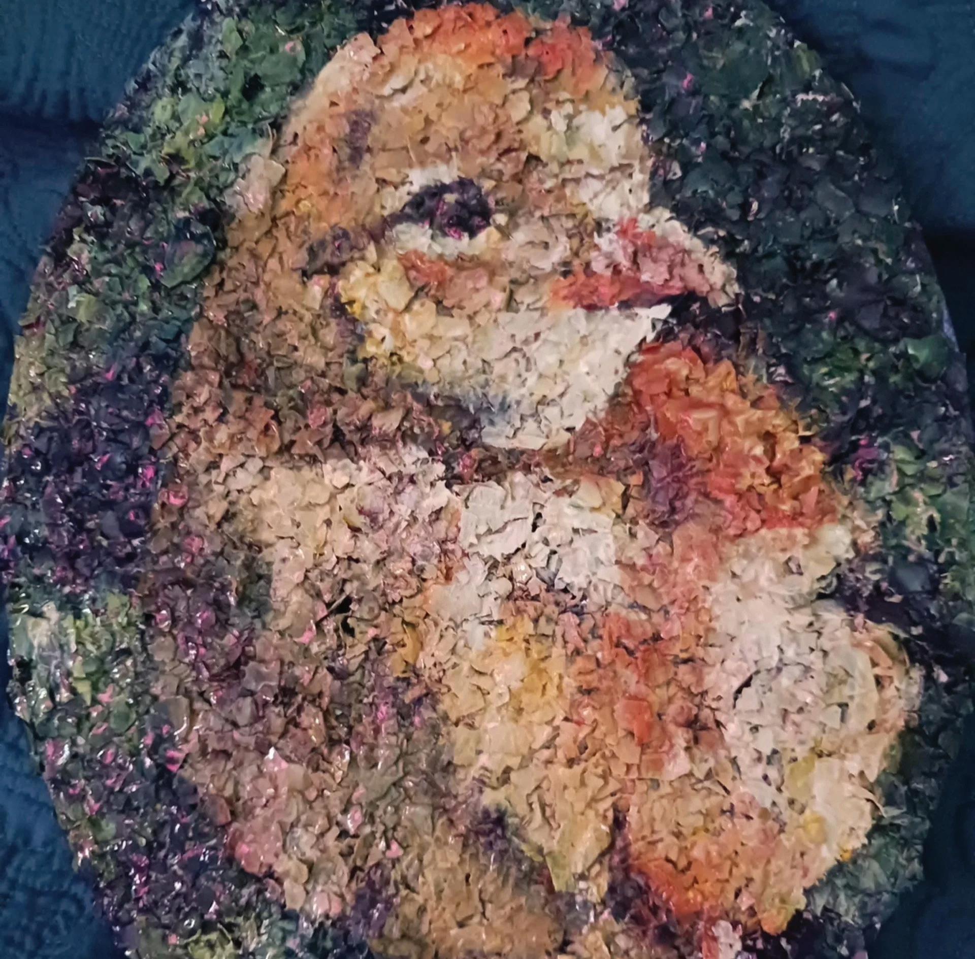“I’ve been painting for so many years. I got a little bored painting flat, so I wanted to add texture and make it more of a challenge to myself,” Holland said. I started adding different things in my paint to do that and I happened upon the eggshells because one day I was just looking in the biodegradable trash that would be thrown in the garden, and I was like, ‘Hmm, you know that might be interesting.”