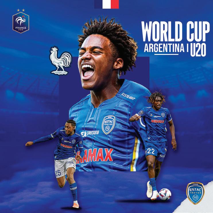 Le sélectionneur national Landry Chauvin a communiqué, mercredi 10 mai, la liste des joueurs retenus pour le Mondial U20 en Argentine, qui se déroulera du 20 mai au 11 juin 2023. Wilson Odobert (attaquant), Alexis Tibidi (attaquant) et Tanguy Zoukrou (défenseur) participeront à la compétition et représenteront fièrement l’ESTAC et la France.