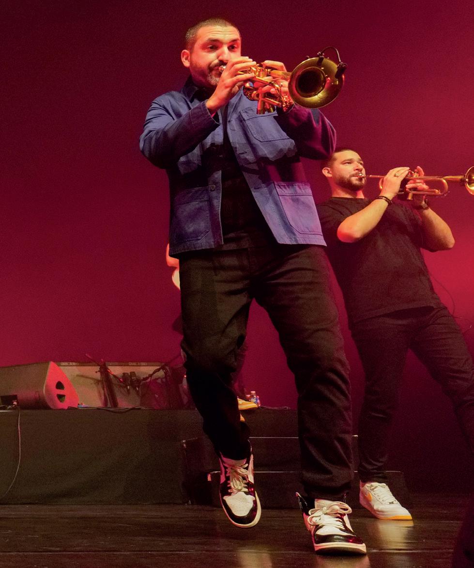 L’heure, c’est l’heure. Quand il s’agit de faire la fête, pas question d’être en retard. Surtout que c’est sa première fois à Troyes. Pas de fioriture, Ibrahim Maalouf entre directement dans le vif du sujet. Il l’a promis, il compte bien inviter le public à danser pendant 1 h 30. 1 h 30 placée sous le signe de la célébration et d’une communion hors norme à travers la musique, au-delà des différences. En moins de temps qu’il ne faut pour le dire, l’ensemble de la salle est debout. Son énergie festive est communicative. Accompagné par huit musiciens de grand talent, le virtuose met le feu à l’espace Argence et il n’a pas l’intention de laisser du répit aux spectateurs. Un seul mot d’ordre: danser sur des rythmes endiablés, d’autres plus émouvants aussi comme le bonus de son album sur lequel il a samplé la dernière fois que son papa a joué et la première fois que son fils a joué. Ibrahim Maalouf offre une véritable ode à la joie, sans tricher, avec une grande humilité, dévoilant son histoire et celle de son père. Car si c’est bien lui, la star, il n’hésite pas à se mettre au service de ses propres musiciens, leur laissant des solos d’une immense beauté. À le voir évoluer sur scène, sa trompette à la bouche dont il joue avec une facilité déconcertante et une décontraction incroyable, Ibrahim Maalouf réussit le pari de convertir même les plus réfractaires à son amour de la musique et de la trompette. Plus qu’un groupe à ses côtés, plus qu’une équipe, c’est une véritable «famille» qui