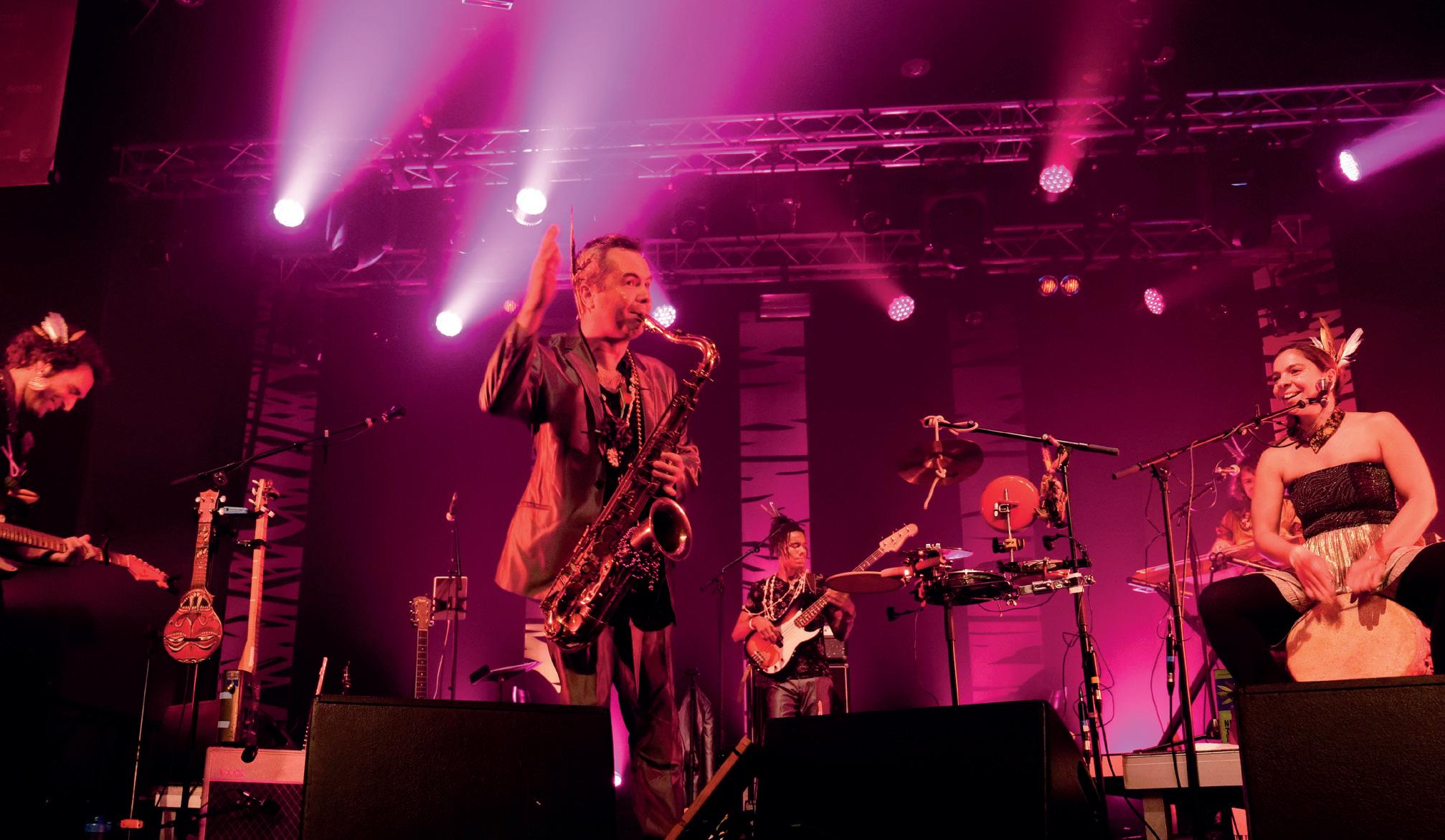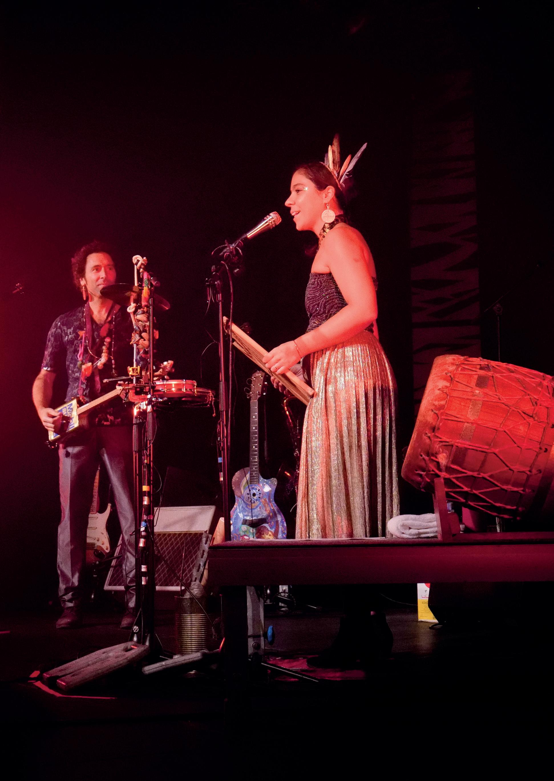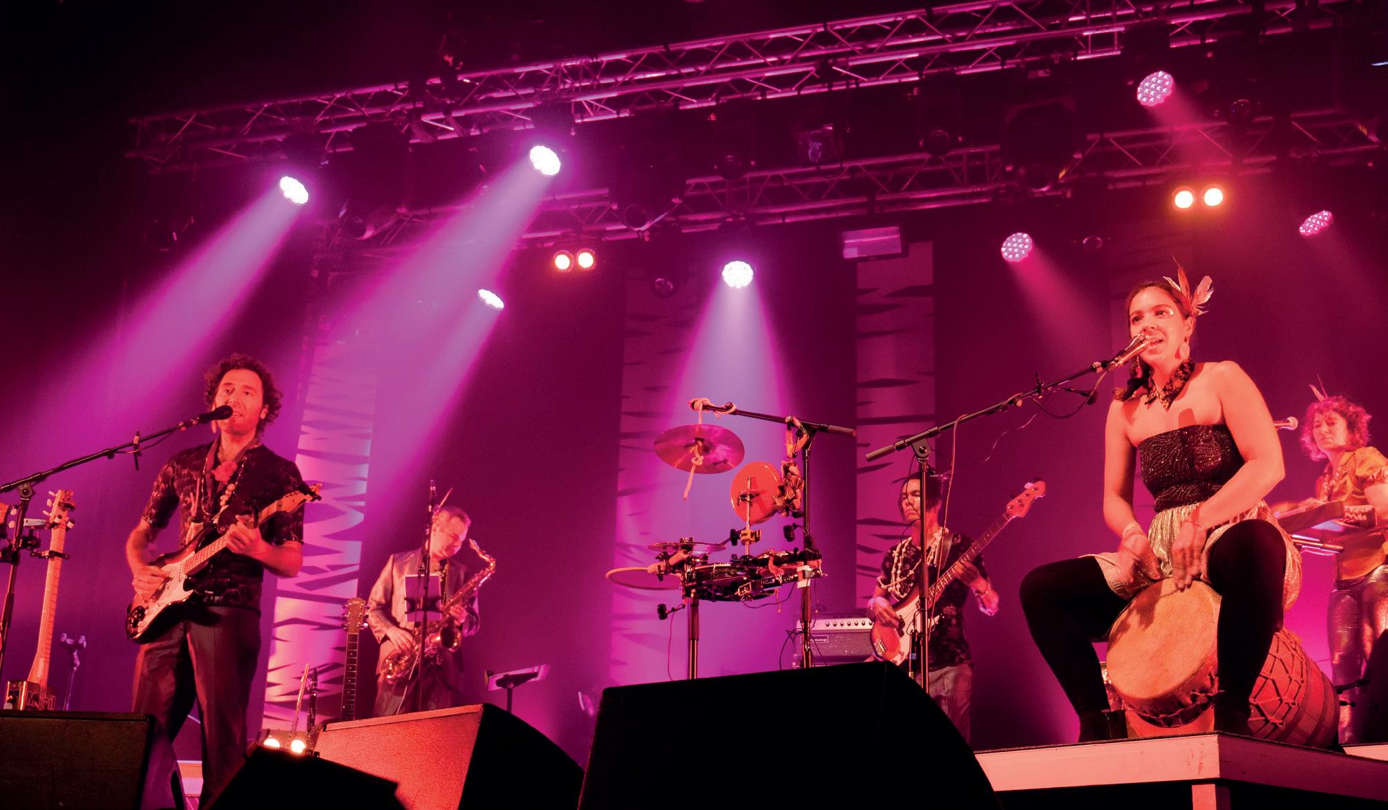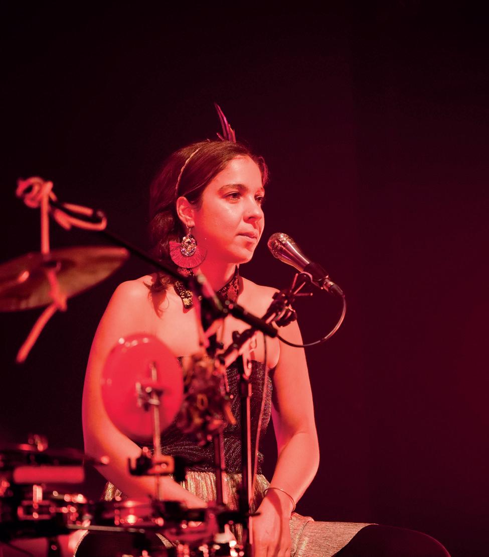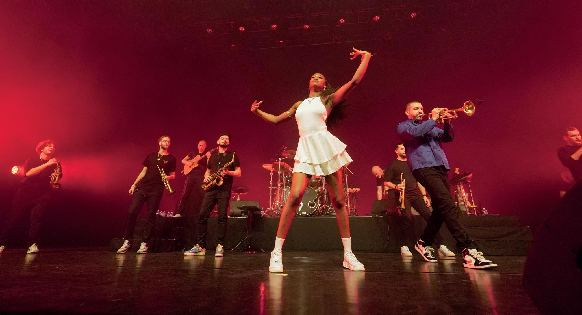 pare des percussions et sur scène, risque, s’émancipe, séduit, convainc. Dans la salle, les corps bougent, s’élèvent, dansent