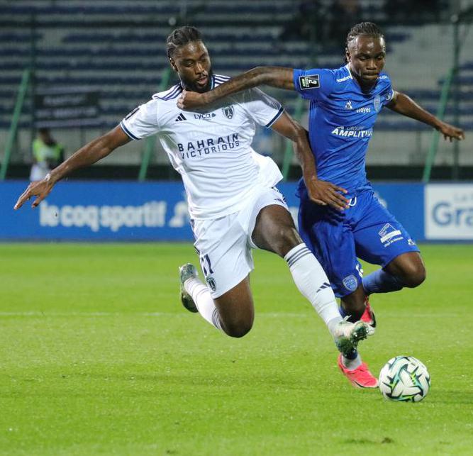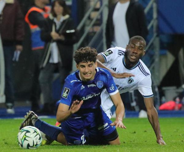Le Parisien JeanPhilippe Krasso, ici à la lutte avec Joseph Nonge, a été le bourreau des Troyens en inscrivant un doublé.