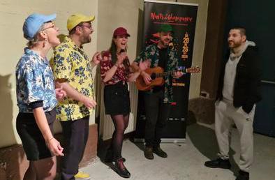A défaut de savoir chanter votre journal aime faire appel au service de livraison de chanson, Offrez une chanson comme une fleur. Des complices parfaits et surtout très talentueux pour surprendre les artistes, qui viennent vous gâter en cette semaine de festival. Après Gaël Faye, Youssoupha et Christophe Willem l’an dernier, c’est le trompettiste de génie Ibrahim Maalouf que nous avons eu envie de cueillir à son arrivée à l’espace Argence. Valise encore à la main, descendu du train depuis seulement quelques minutes, l’artiste surpris par cet accueil en chanson, n’a pas boudé son plaisir. Attentif, à l’écoute et surtout acteur de la prestation de Louis et sa bande, Ibrahim Maalouf a savouré l’instant et l’interprétation de Je dis aime de M, avec lequel il a eu l’occasion de collaborer. Un choix et une attention auxquels il a été sensible. Les dernières notes s’envolent et le voilà qui s’empresse de les féliciter pour leur prestation avant de rejoindre sa loge. «J’ai le cœur qui palpite. M et cette chan-