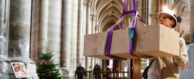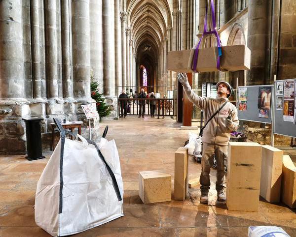 DES BLOCS DE PIERRE MONTÉS EN HAUT DE LA CATHÉDRALE