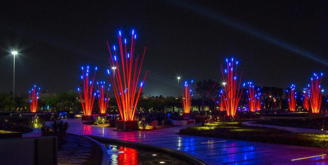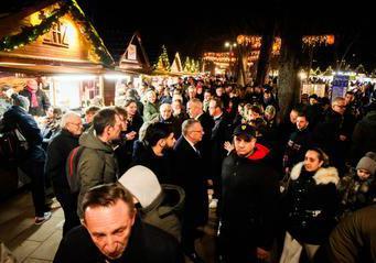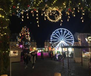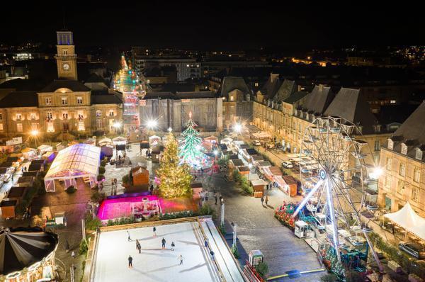 Depuis les promenades JeanLouisSchneiter, la vue nocturne révèle le marché de Noël, troisième plus grand de France. Gourmandises, petit train, père Noël et jeux de lumière composent un décor féerique. La Fabrique du père Noël attire toujours autant les enfants et les touristes émerveillés.