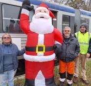 Pour ces fêtes de Noël, l’association du chemin de fer touristique des Ardennes innove. Pour la première fois, les bénévoles acheminent un train de Noël. C’est une réussite totale, les deux trains prévus les 13 et 14 décembreaffichent complet. « Les gens viennent même d’Épernay, ils sont à une heure trente!» se réjouit le président de l’association, Pascal Dumont. Parmi les surprises prévues, le bonhomme barbu viendra à bord d’un autre train, qui s’arrêtera sur le trajet, dont la halte reste secrète. Il se rendra ensuite dans le train transportant les passagers. Pour l’occasion, il y aura une distribution de sachets de friandises et le quai sera même décoré avec un père Noël géant gonflable.Il y aura bien sûr aussi des lutins.
