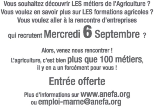 Stand de l’Enseignement Agricole de la Marne - Air libre R748 Foire de Châlons-en-Champagne Mur d’offres d’emploi