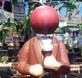 Chaque jour, nous vous proposons de retrouver un objet ou un endroit particulier dans la Foire. À vous d’être observateur pour repérer où sont situés ces éléments parfois totalement décalés. Sur cette photo mystère, vous devrez deviner où se trouve ce mystérieux personnage, à la tête de pomme, qui porte une pinte de bière à la main. Comme tout bon visiteur qui a besoin d’un rafraîchissement par cette chaleur, il se trouve à l’extérieur afin de profiter des rayons du soleil. Avez-vous pris un verre pas très loin de lui?