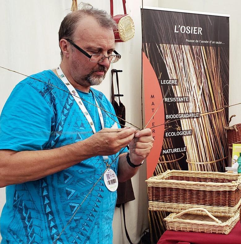 “On nous parle beaucoup d’écologie, mais la vannerie c’était l’écologie avant l’heure”Pierre Eveillard propose des démonstrations de tressage sur son stand.